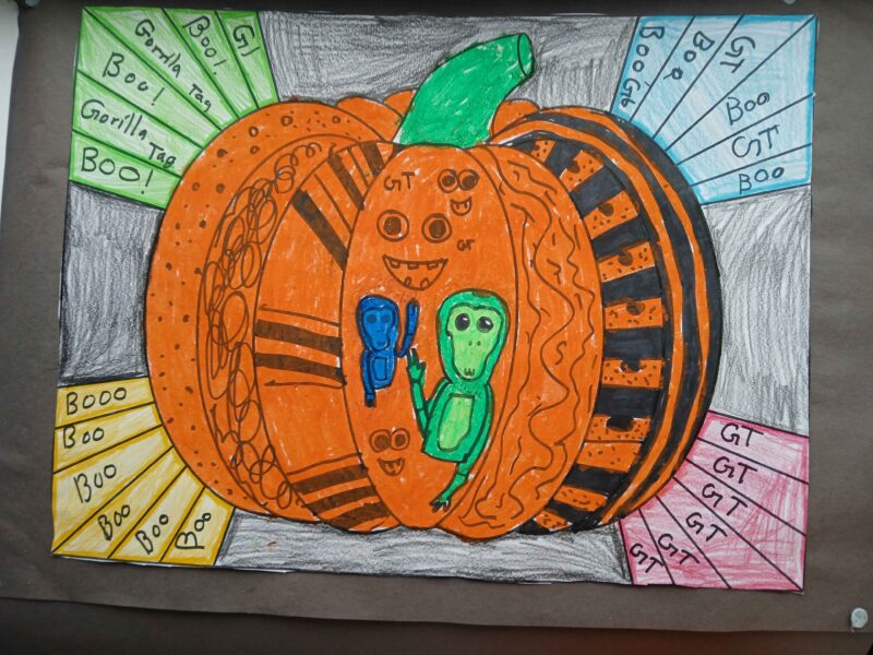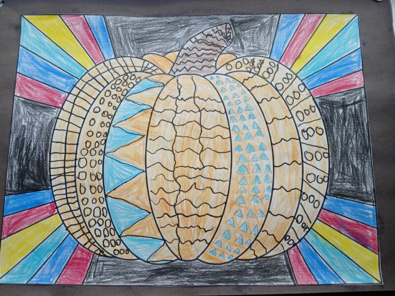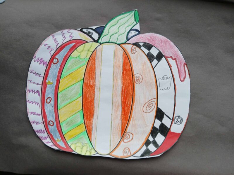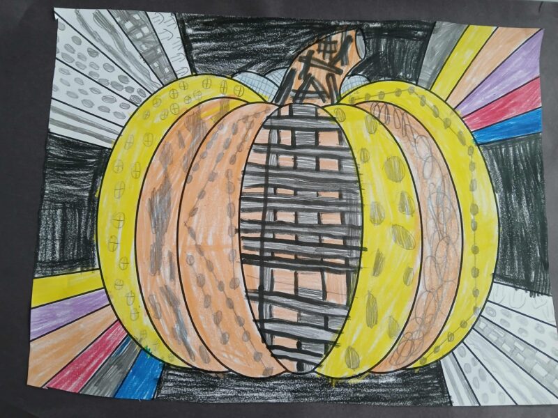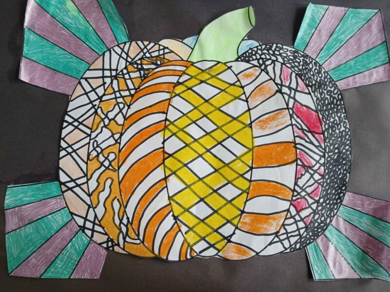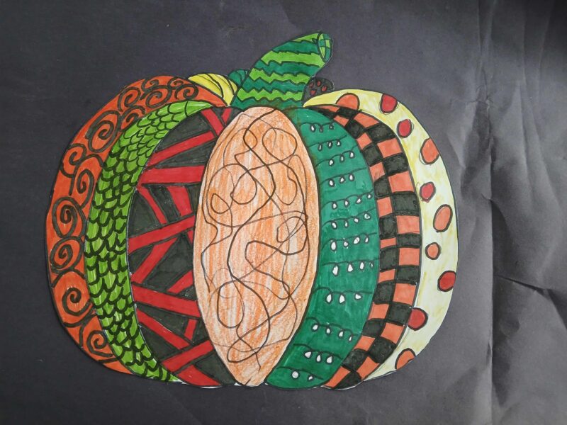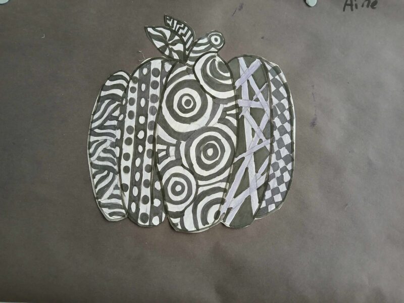 We looked at patterns that occur in our environment- naturally occurring patterns and man-made patterns. Can we find patterns in nature etc. We also discussed how pumpkins look, feel – texture, are all unique etc. We experimented with patterns- copying patterns and creating patterns. We looked at the “Zentangle Guide by Mrs. Hamilton”. Some of the boys and girls drew their pumpkin free hand while others opted to focus on their patterns within a pumpkin template! Here is a small sample hope you like them!