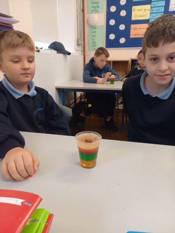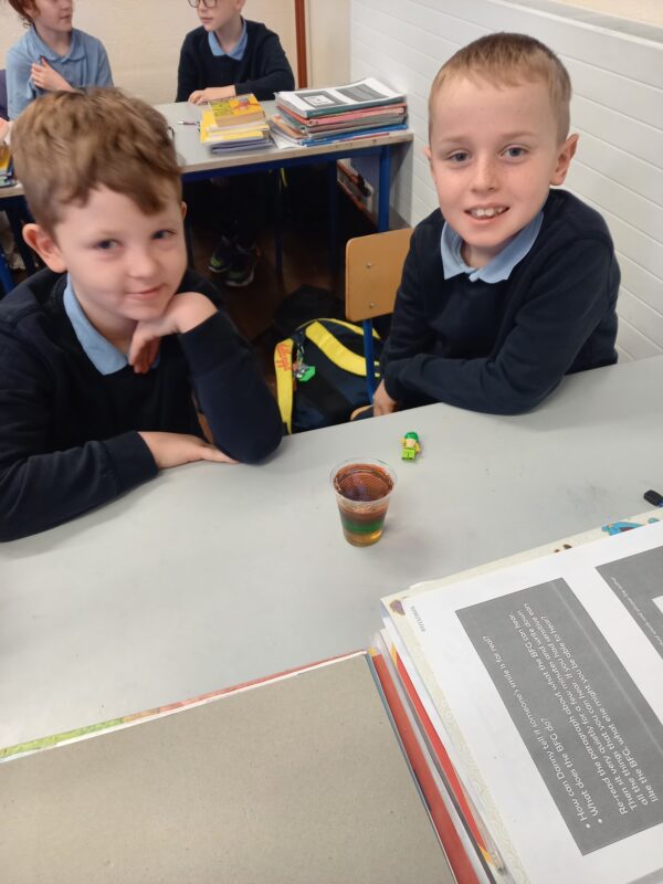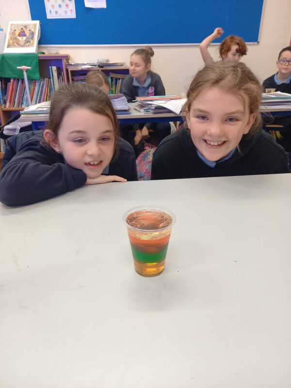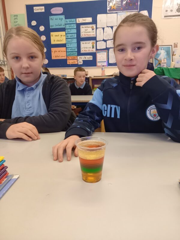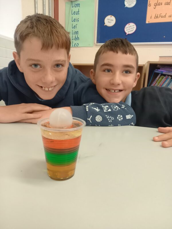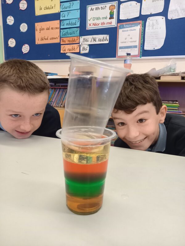 Pupils in 3rd and 4th class tried a number of fun experiments this Science Week including testing balloon rockets, seeing the effects of different liquids on the shell of an egg and testing the density of a number of liquids in a jar. Great fun was had and we hope it will lead to much more enquiry based activities at home.