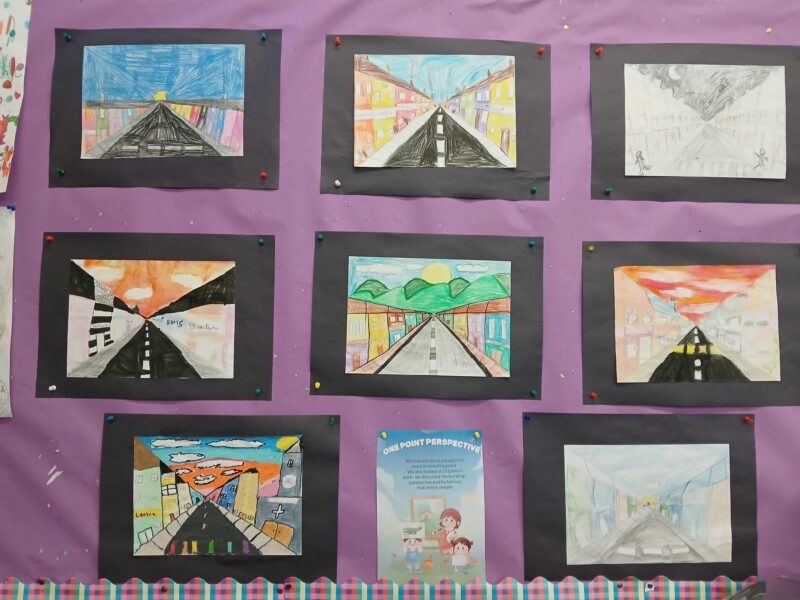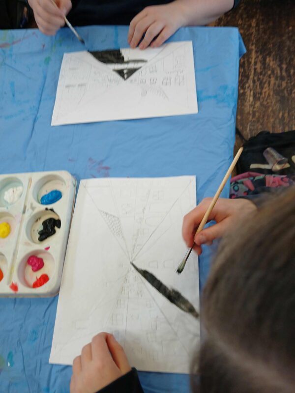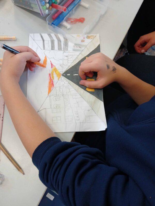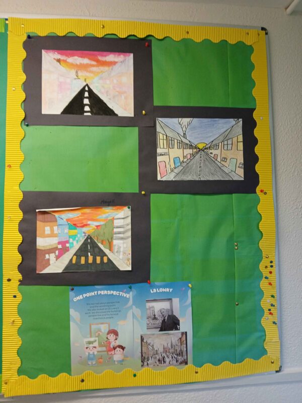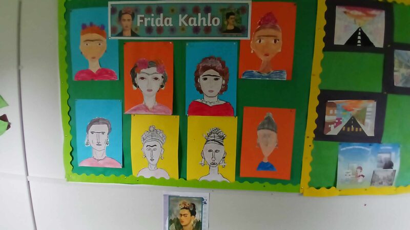 We looked at the art works of LS Lowry and Frida Kahlo. Exploring shape, colour, line, perspective etc.